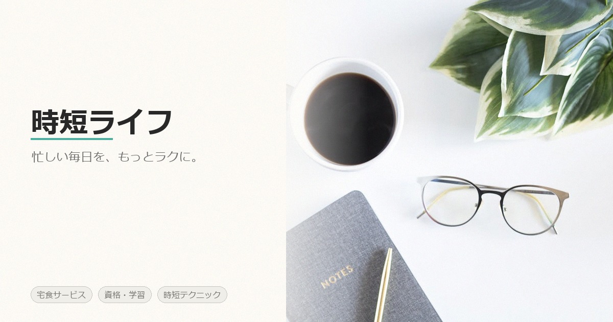 「時短ライフ」は、忙しい社会人・共働き家庭・子育て世帯のために、毎日の「時間がない」を解決する情報メディアです。食事の時短(宅食サービス比較)、キャリアアップ(資格・学習)、家事の効率化(朝活・時短テク)の3つのテーマで、すぐに実践できる情報をお届けしています。