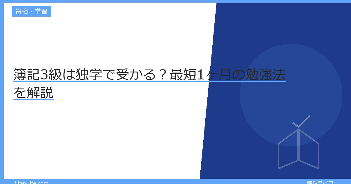 「簿記3級って独学で受かるの?」「仕事しながらでも間に合う?」——結論から言えば、簿記3級は独学で十分合格できます。
