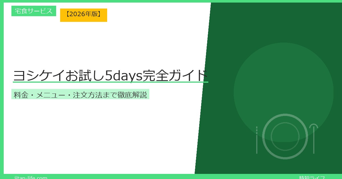 この記事では、2026年最新のお試し5daysキャンペーンの全容を、料金・メニュー・申込方法・実際の体験レポートまで徹底的に解説します。読み終わる頃には、あなたがヨシケイを試すべきかどうか、明確に判断できるようになっているはずです。